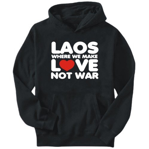 Hoodie Mens Black " Laos WHERE WE MAKE LOVE NOT WAR " Countries Small Review